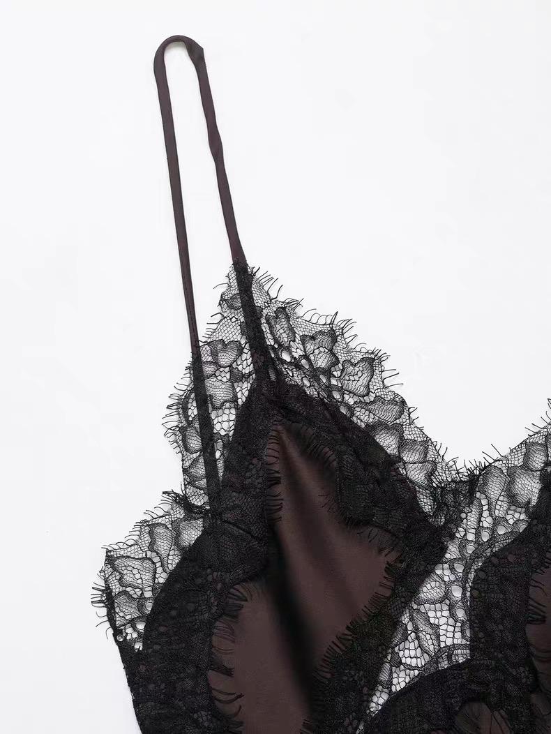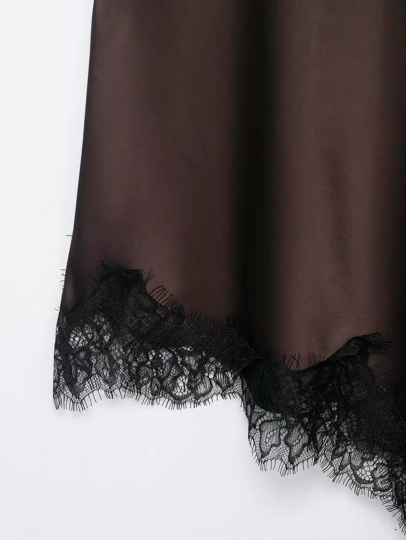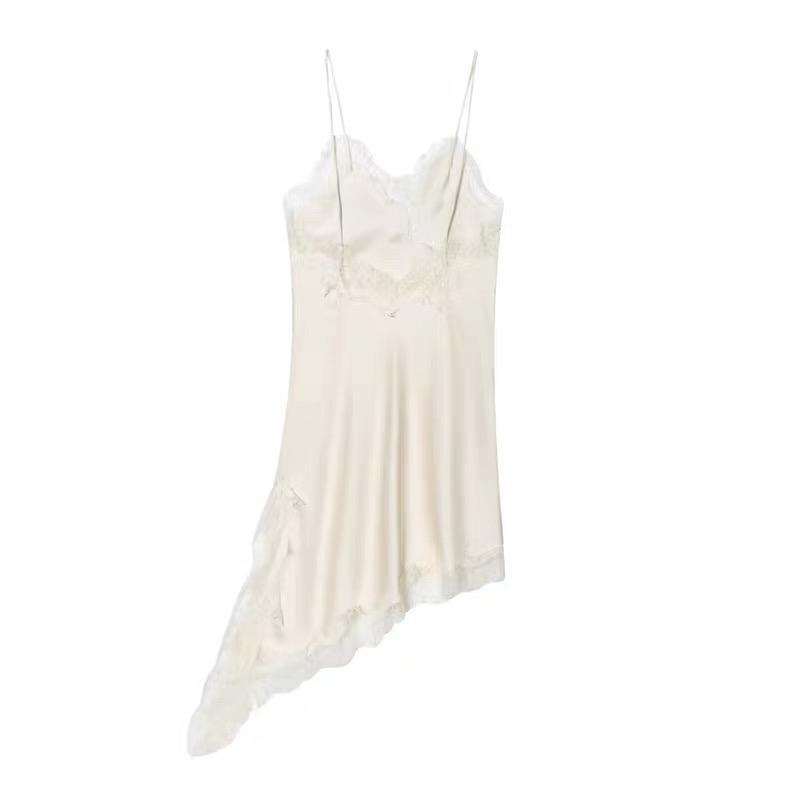 Make a bold statement with this stunning asymmetric slip dress that redefines modern elegance. Featuring exquisite lace trim detailing and a dramatic asymmetrical hemline, this piece is designed for the woman who isn't afraid to stand out.