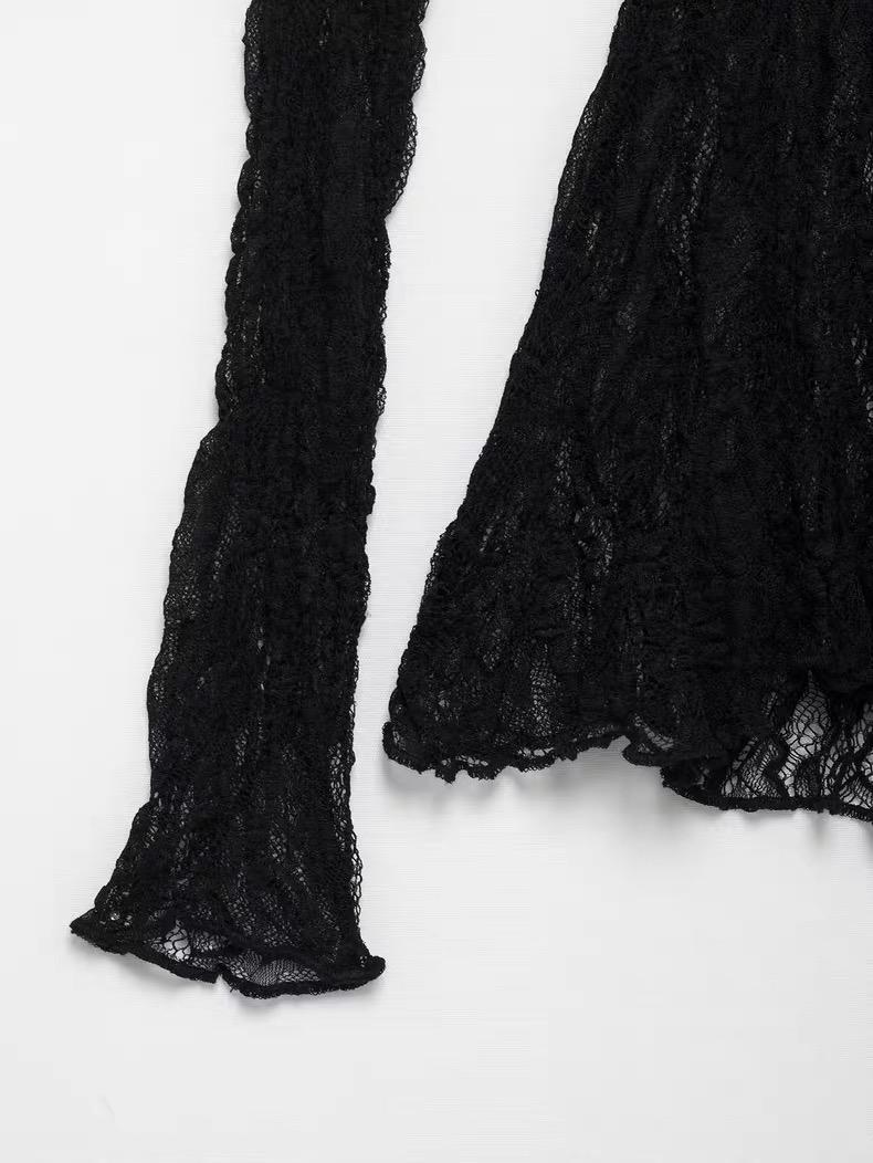 Embrace timeless elegance with this exquisite black floral lace long sleeve top. Featuring intricate all-over lace detailing and a romantic peplum hem, this piece is the epitome of sophisticated femininity.