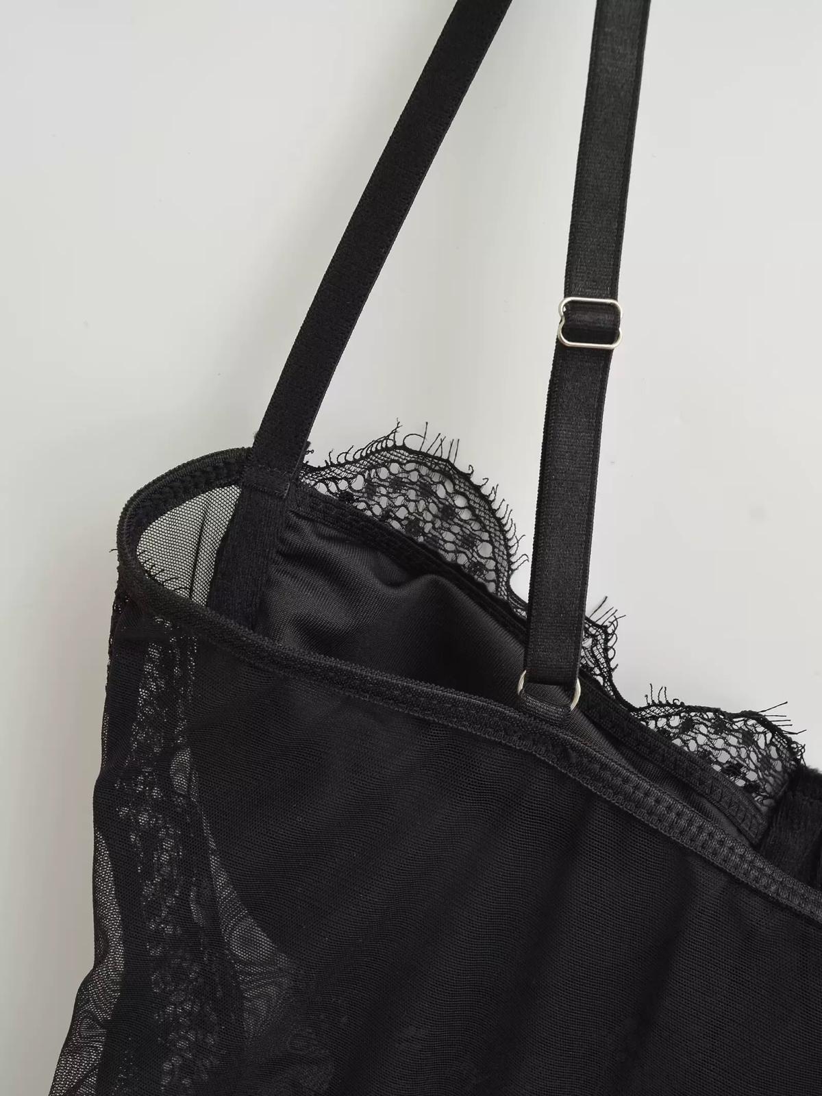 Indulge in luxurious comfort with this stunning black satin bodysuit featuring delicate lace trim. The perfect blend of sophistication and sensuality, this piece is designed to make you feel effortlessly elegant and confident.