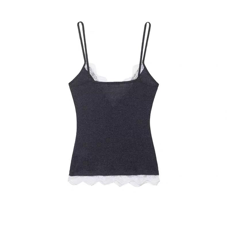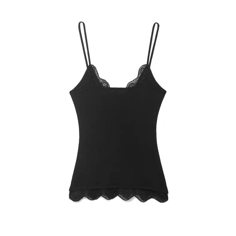 Experience effortless elegance with this sophisticated layered cami featuring delicate lace trim detailing. This versatile piece combines a sleek black outer layer with a charming white scalloped hem, creating a beautiful contrast that's both modern and timeless.