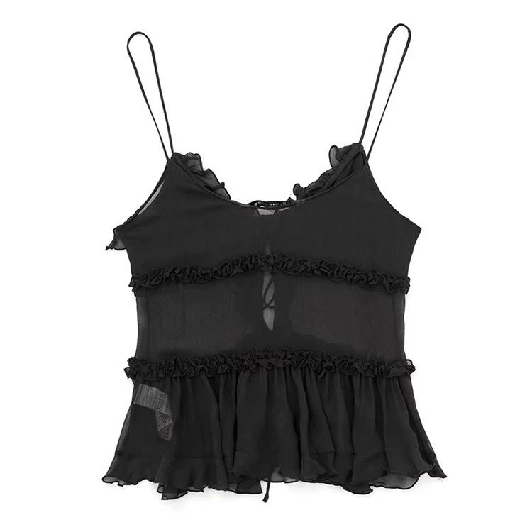 RUFFLE LACE-UP CAMI TOP