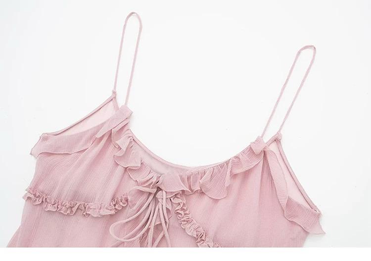 Embrace romantic elegance with this dreamy blush pink cami top. Featuring delicate ruffle tiers and a charming lace-up front detail, this piece is perfect for creating feminine, eye-catching looks.